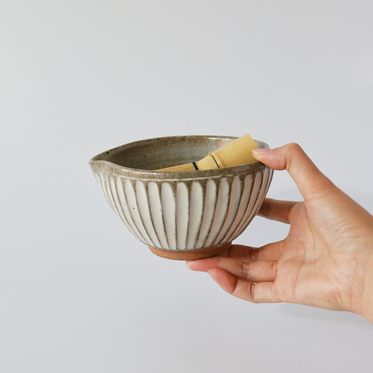 Matcha Bowl with Spout - Carved Kohiki by Masamura