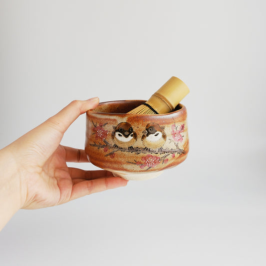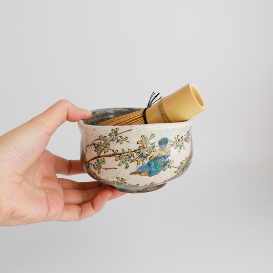 Kutani Ware Matcha Bowl - Sparrow in Spring