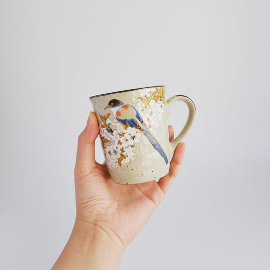 Kutani Ware Japanese Mug Cup - Yoshidaya Cherry Bird