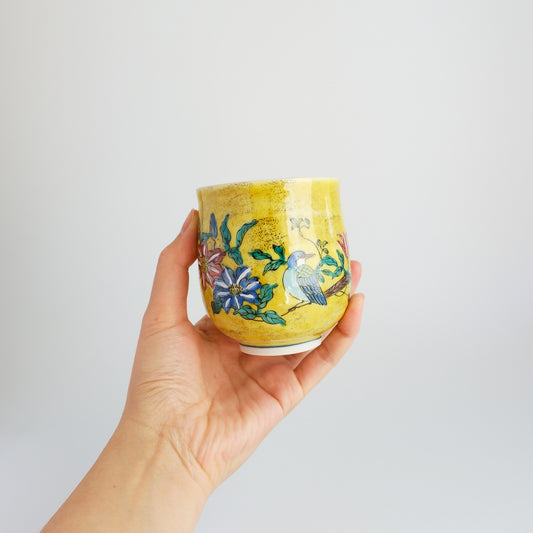 Kutani Ware Japanese Yunomi Tea Cup - Yellow Yoshidaya Bird