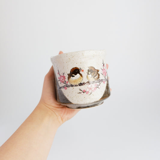 Kutani Ware Japanese Yunomi Tea Cup - Love Sparrow in Spring
