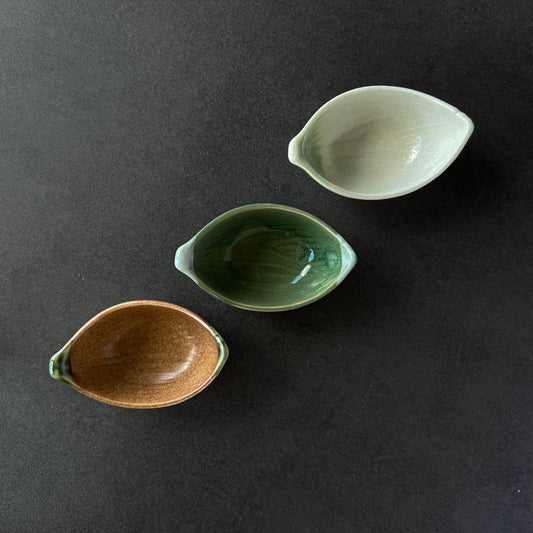 Leaf Shaped Petit Sauce Dish - Beige / Green / Brown