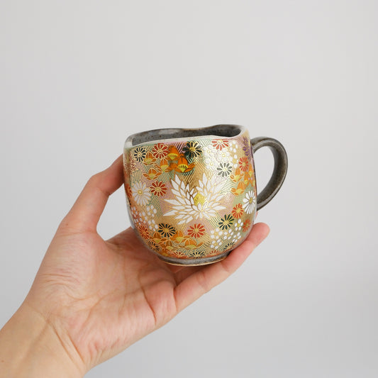 Kutani Ware Japanese Mug Cup - Gold Flowers