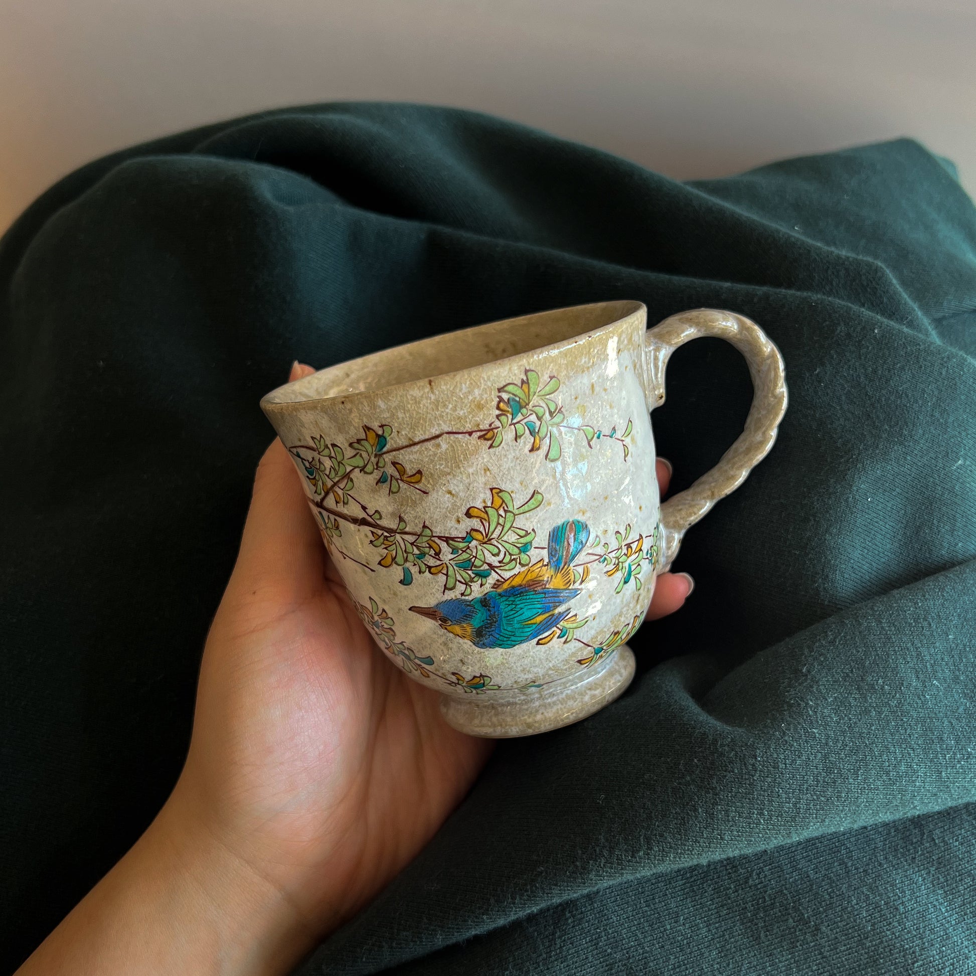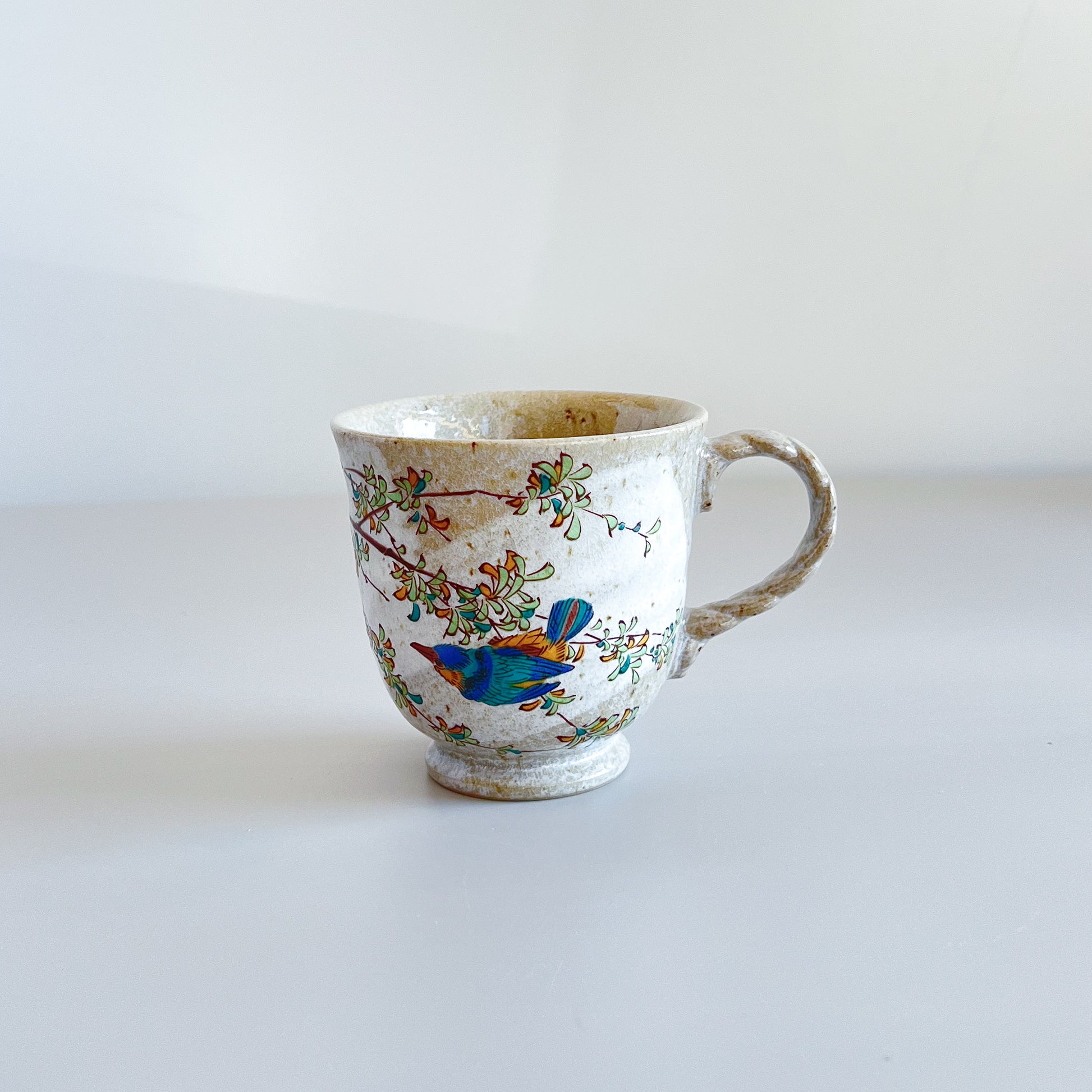 Kutani Ware Japanese Mug Cup - Kawasemi Kingfisher Bird
