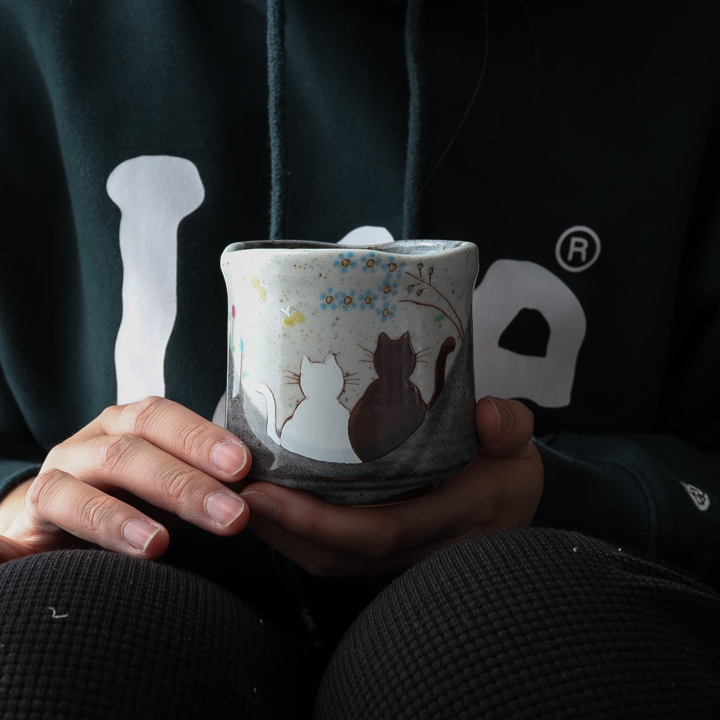 Kutani Ware Japanese Yunomi Tea Cup - Cat's Sunny Spot
