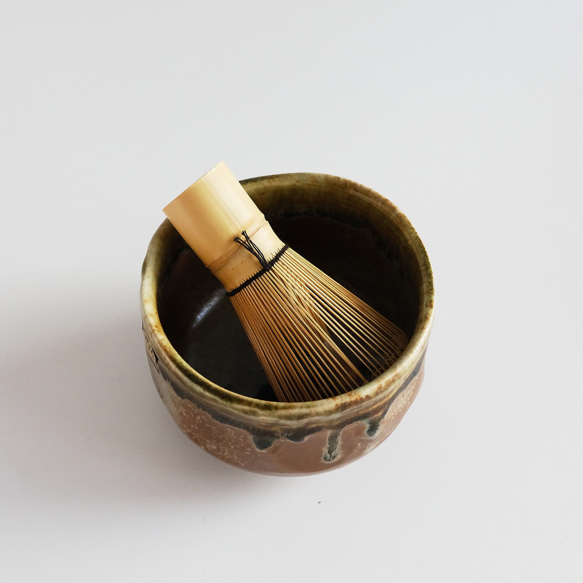 This matcha bowl (chawan) has a beautiful mossy green glaze that calls nature to mind.