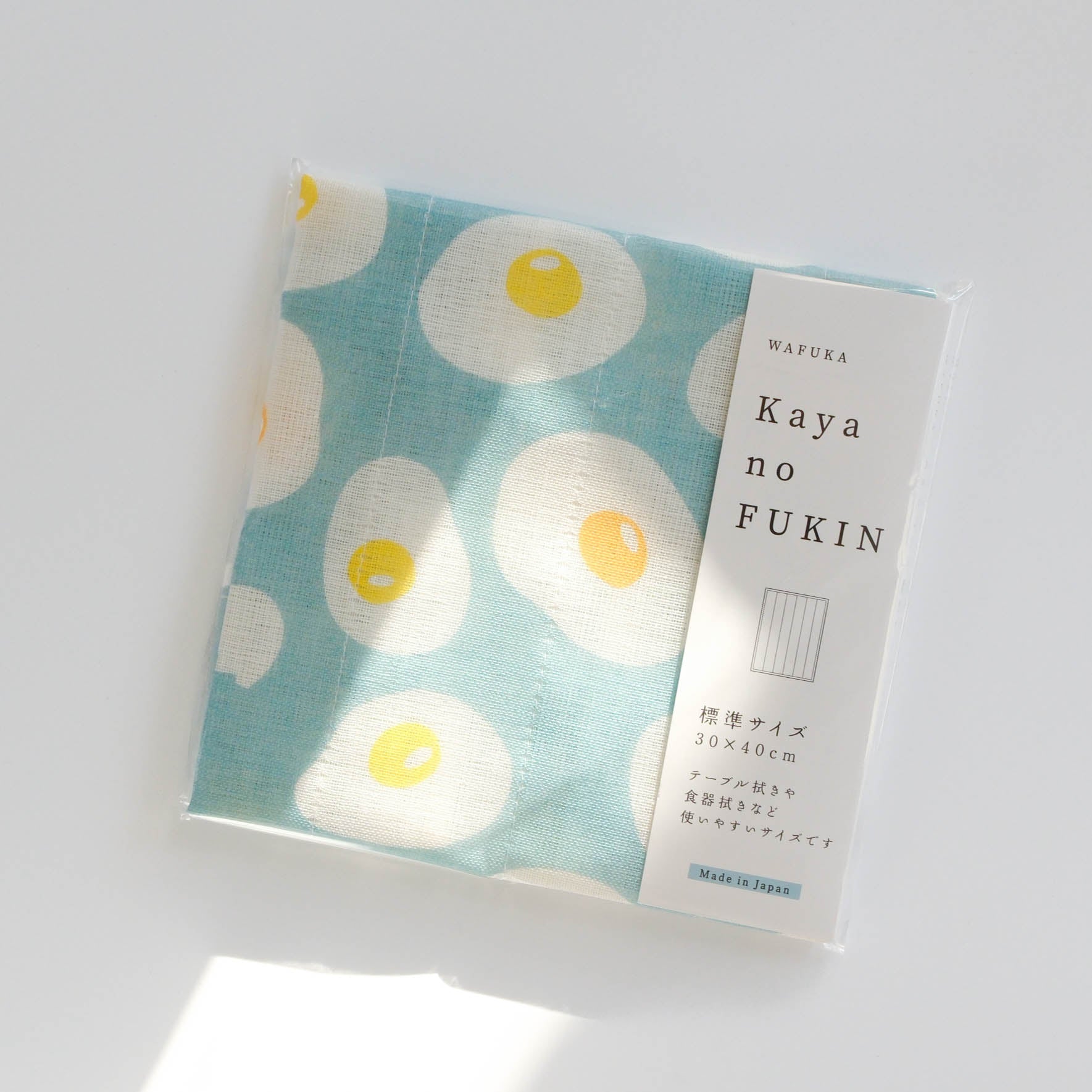 Made in Nara, Japan, this WAFUKA Kaya no Fukin showcases a fun and quirky fried egg pattern that brightens any kitchen. Crafted from traditional Kaya cloth, it’s lightweight, quick-drying, and durable, perfect for everyday use. The fabric feels slightly stiff when dry but becomes softer and more absorbent with each wash, making it ideal for wiping dishes, tables, or hands.