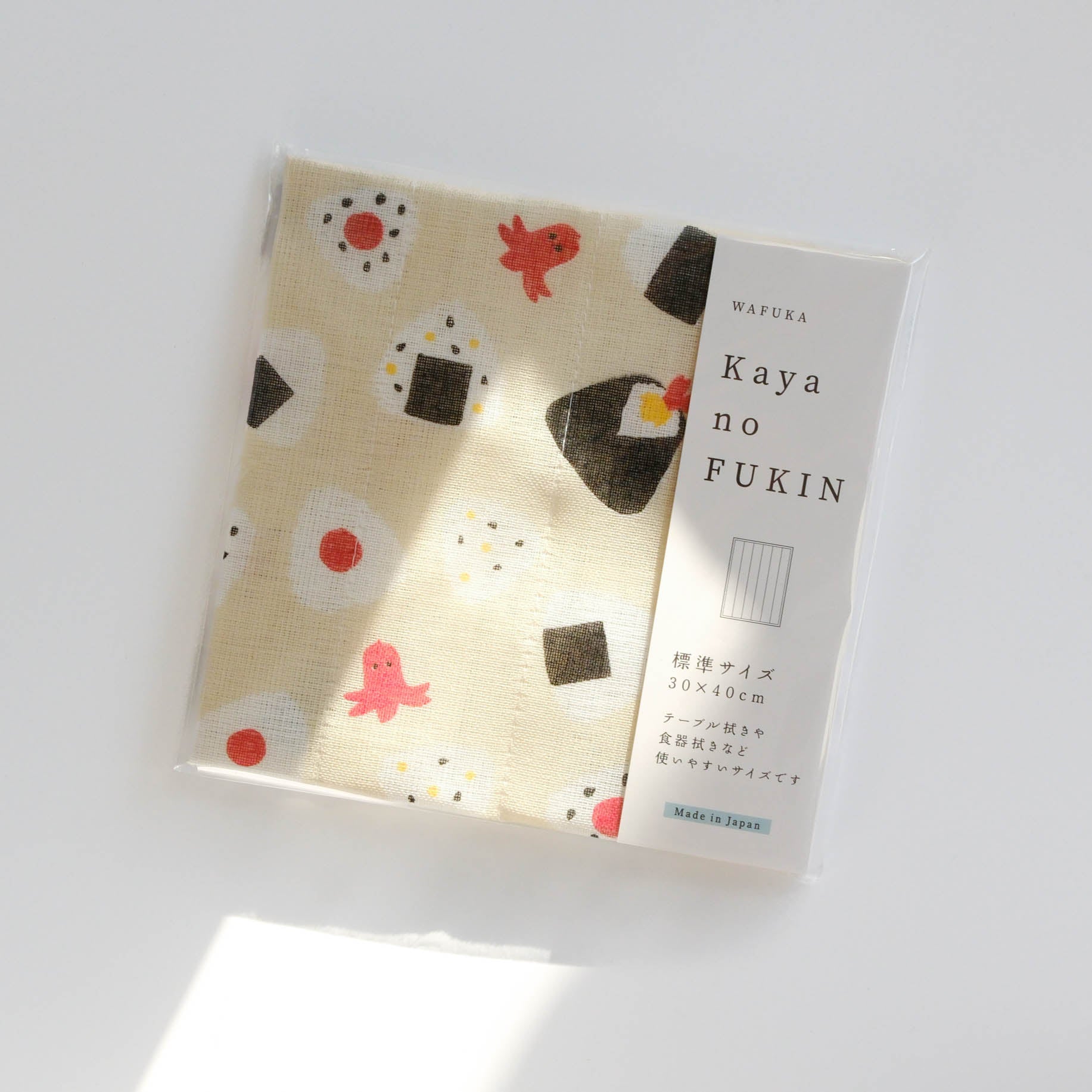 Made in Nara, Japan, this WAFUKA Kaya no Fukin features a cute onigiri (rice ball) pattern that adds a touch of playfulness to your kitchen.