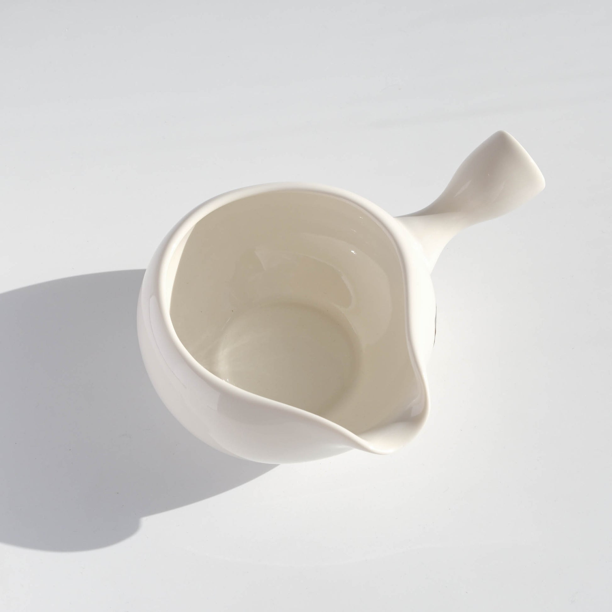 This Mino Ware Yuzamashi (湯冷まし) by Shoko-en has a curved spout that lets you pour smoothly and with control. The side handle makes it easy to hold, and the glossy white glaze gives it a clean, simple look.