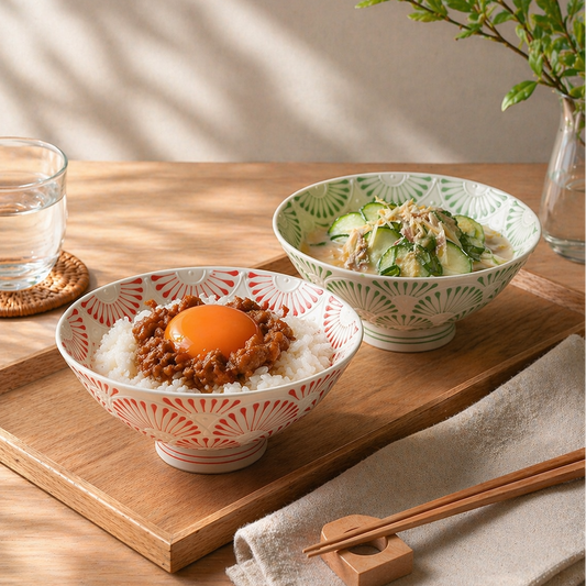 Hasami Ware Icchin Large Rice Bowl 13.5cm - Sen (Fan Shaped)